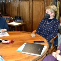 La presidenta de APRECU, Mª Pilar Jiménez, y el vicepresidente de la asociación, Ramón Pareja, han mantenido una reunión con el presidente de la Diputación Provincial de Albacete, Santiago Cabañero, y la diputada provincial de Turismo, Raquel Ruiz, para activar la organización del III Encuentro Mundial de Capitales de Cuchillería.
