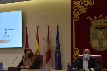 Albacete, 8 de febrero de 2022. El salón de plenos del Ayuntamiento de Albacete ha acogido esta mañana la reunión del Comité Organizador del Albacete Meetings III Encuentro Mundial de Capitales de la Cuchillería, presidida por el alcalde de la ciudad, Emilio Sáez, quien ha señalado que “es un evento que va a situar a esta ciudad en el epicentro de la industria cuchillera del mundo, que aportará un valor añadido desde el punto de vista turístico, puesto que es un escaparate incomparable para darnos a conocer, además del impulso que se puede dar a este sector, tan importante para esta ciudad y esta provincia”.